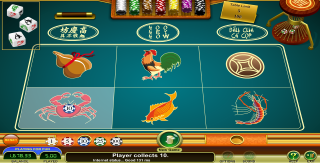- 使用三個骰子。每個骰子上有以下符號:魚、蝦、金幣、硬幣、螃蟹和公雞。