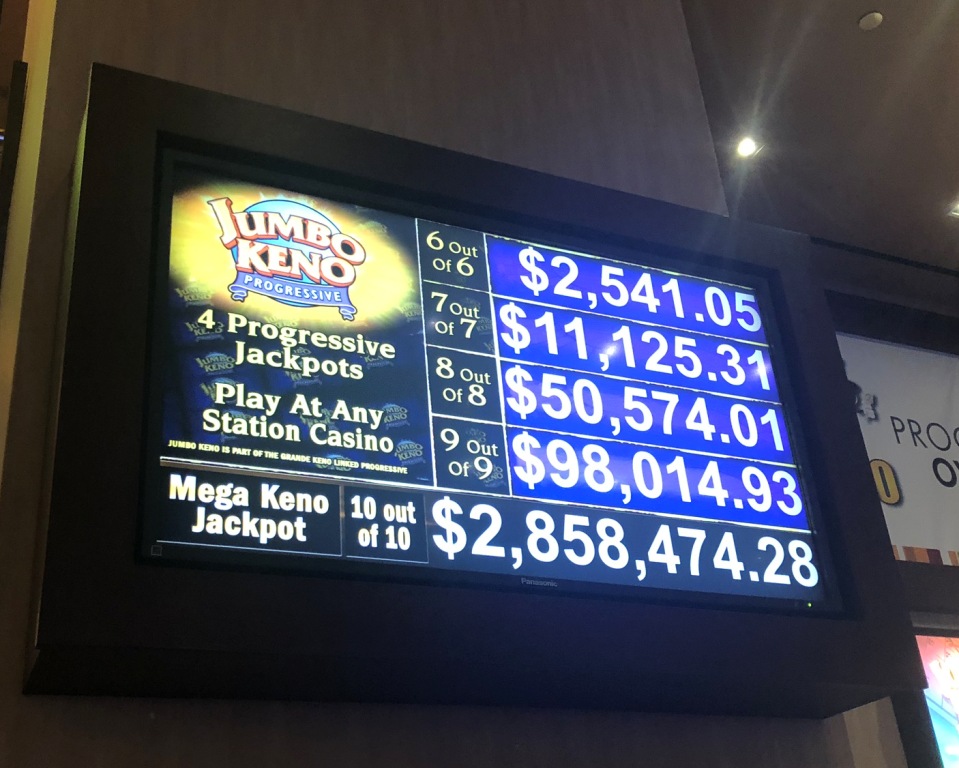 拉斯維加斯的Stations Casinos賭場提供五種累積基諾遊戲。其中四種,即選6、選7、選8、選9,稱為「巨額累積基諾」遊戲。第五種,即選10的遊戲,稱為「巨額10」。規則卡顯示,「巨額10」並非Station Casinos獨有,在內華達州的其他地方也能找到。所有巨額累積遊戲的投注額均為1美元,而「巨額10」的投注額為1.5美元。