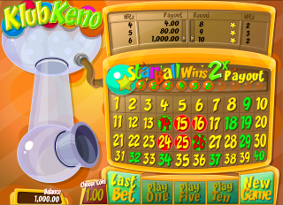 使用 Gamesys 軟體的網路賭場提供一款名為「Klub Keno」的遊戲。它類似於40 球基諾遊戲,不同之處在於,如果特殊的「星星球」與玩家選擇的號碼之一匹配,則獎金將翻倍。
