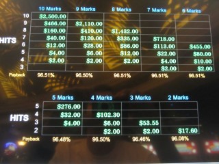 最後,如規則所述,遊戲還設有隨機觸發的獎勵機制,可額外增加0.5025%的賠率。因此,綜合考慮所有因素,2美元的選10注投注的回報率為0.959759 + 0.005025 = 0.964784。根據賠付表,U1 Gaming的報酬率為96.51%。就我個人而言,我不會因為0.03%的差距而失眠。
