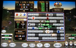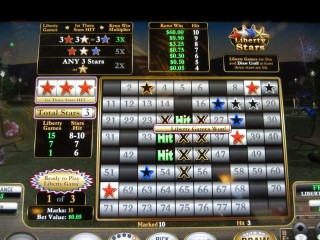 Liberty Stars 是一款基於基諾的遊戲,可在U1 Gaming生產的多遊戲機上使用。我在拉斯維加斯的拉斯維加斯俱樂部、Rampart、El Cortez 和 Dotty's 賭場都見過這樣的機器。 Liberty Stars 的特色是遊戲會隨機在玩家未選擇的十個數字上放置一顆星。這些星星可以是紅色、白色、藍色或金色。如果遊戲抽取的 20 個數字與星號匹配,玩家就可以贏得乘數或獎勵遊戲。