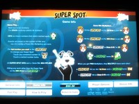 Super Spot 是一款基於基諾的遊戲,可在 U1 Gaming 生產的多遊戲機上使用。我在拉斯維加斯的拉斯維加斯俱樂部、Rampart 和 Dotty's 賭場都見過這樣的機器。 Super Spot 與Power Keno類似,但有兩種可能的乘數:一種是擊中最後一個選定的數字,另一種是擊中最後一個球上的任意數字。