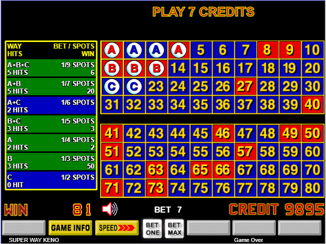 - 選 7(A 和 B 號碼)——7 次接球中 5 次獲勝,贏 20 次