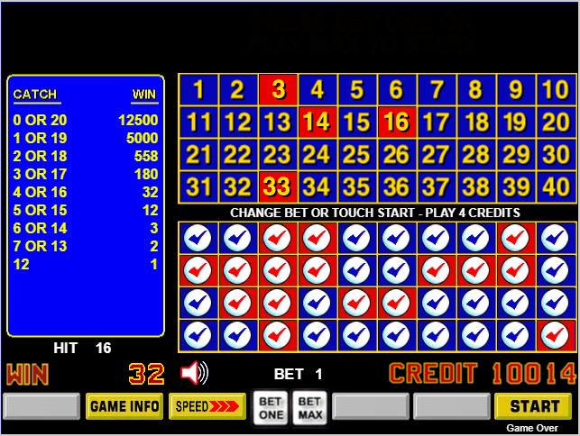 下圖中,我押注了後40個號碼。我投注1個積分,20個號碼中了16個,贏了32個。
