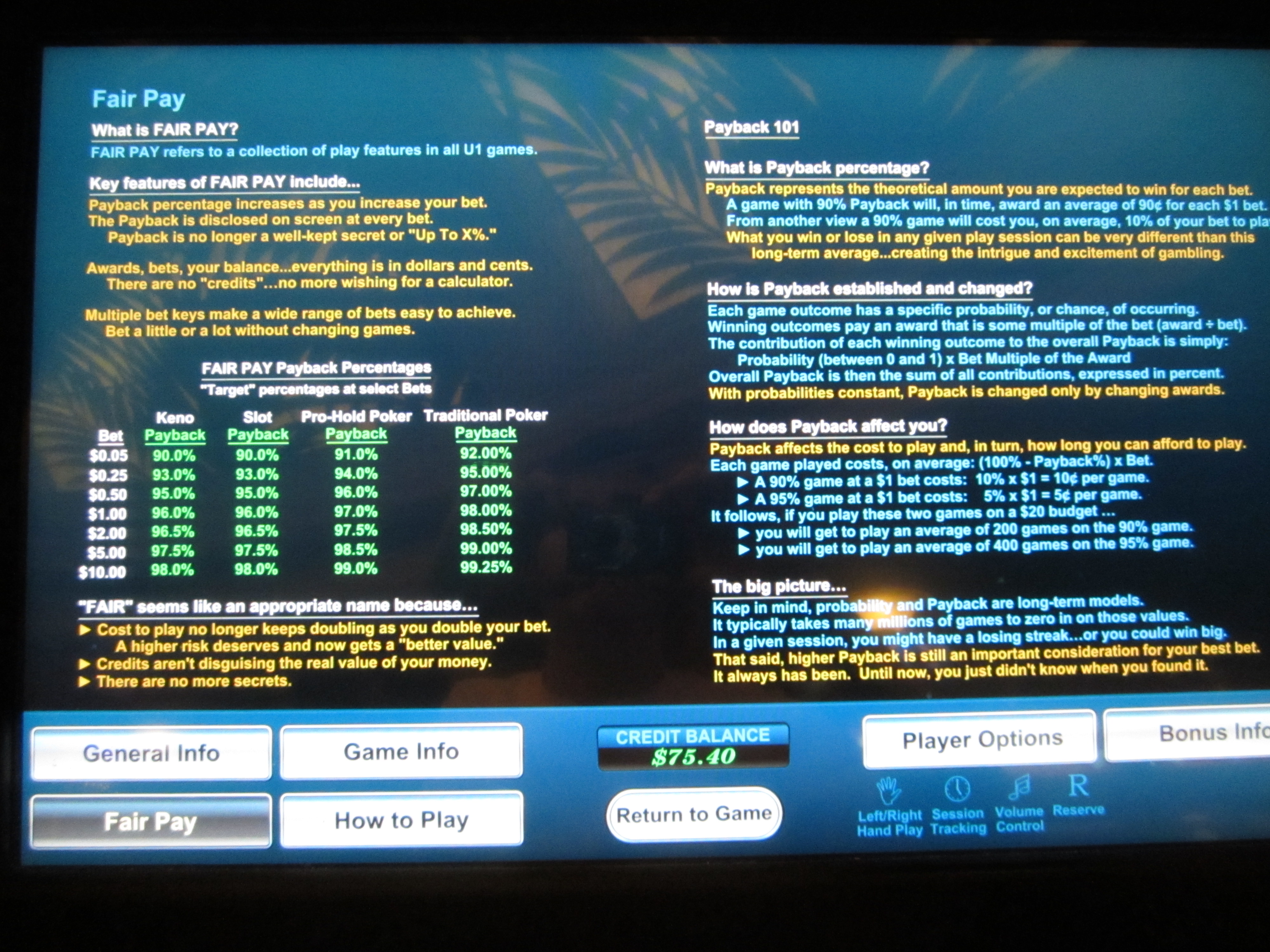 U1 Gaming 生產的多遊戲機提供種類繁多的視訊撲克、基諾和老虎機遊戲。視訊撲克遊戲分為兩種類型:「專業撲克」和常規「撲克」。在「專業撲克」遊戲中,遊戲具有基於最佳策略的自動暫停功能。在常規「撲克」遊戲中,沒有自動暫停功能,因此玩家在策略方面需要自行決定。 U1 與其他老虎機製造商的不同之處在於,他們公開聲明所有遊戲的理論回報率。隨著玩家下注的增加,賠付表會變得更加豐厚,預期報酬率也會隨之增加。