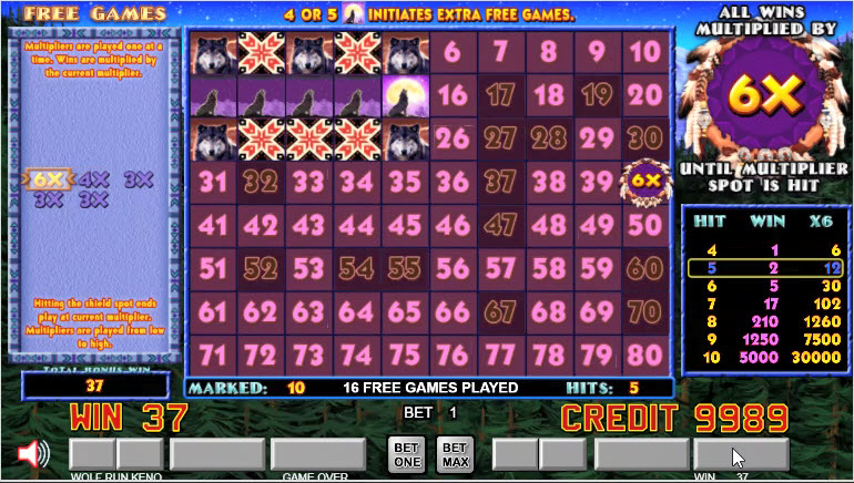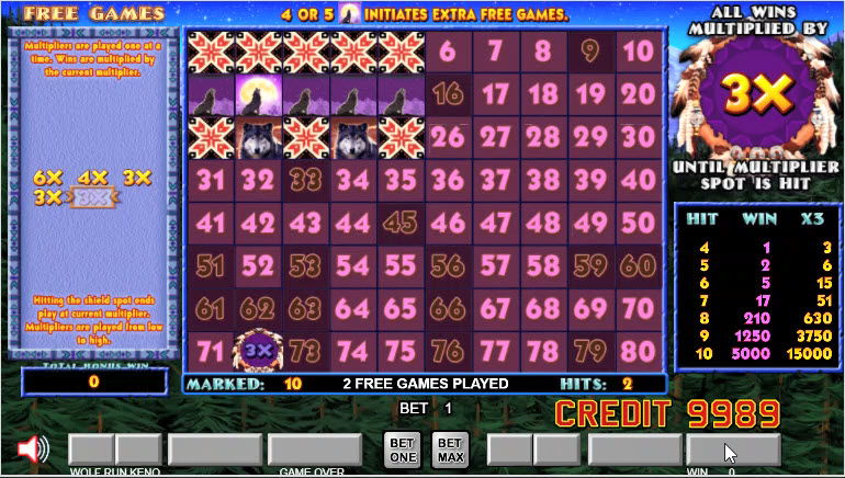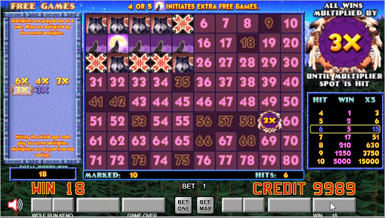 上圖顯示我選擇保持我的選擇不變。我的十個標記點標有X。五個獎勵點標有狼。您也可以在左側面板中看到我的乘數。其中一個3倍乘數已被突出顯示,它將應用於下一局遊戲。
