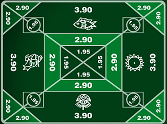 - 遊戲使用一個四面旋轉的轉盤。四面分別是帝王蟹、大蝦、花和魚。玩家押注旋轉後哪一面會排在最上面。