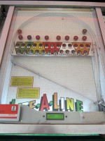 Lite-a-Line 是彈珠台和賓果遊戲的結合。它類似於彈珠遊戲,因為你用柱塞將球射到棋盤上;但它也像賓果遊戲,因為你希望球連續突出五個點,這樣你就能贏。當球穿過棋盤上的 25 個孔時,五乘五的記分卡上對應的格子就會亮起。玩家通常下注 1 美元,贏家將獲得 15 美元。