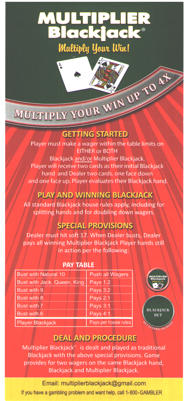 乘數二十一點是二十一點的變體,在同一手牌中有兩種下注方式。一種是標準二十一點下注,另一種是乘數下注。如果莊家爆牌,玩家獲勝,乘數下注將支付額外獎金。
