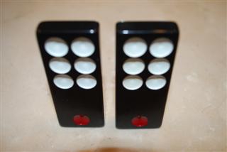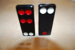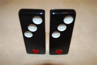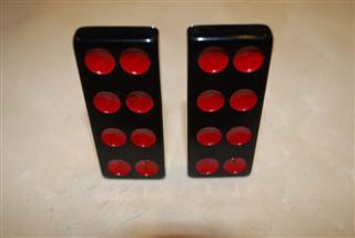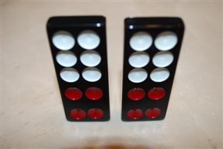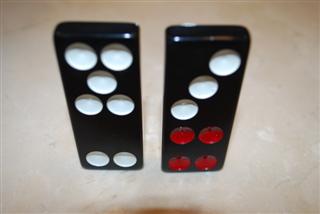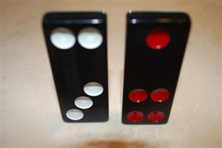 與傳統中國骰子相同的配色方案,每張帶有1點或4點的半骨牌,其點數均為紅色(例如,4-5骨牌有四個紅點和五個白點)。唯一的例外是一對6-6骨牌。 6-6骨牌上的一半點數為紅色,以突出其為最高等級的平民牌。在牌九中,點數顏色在遊戲過程中沒有任何作用;它只是為了在視覺上使牌更具傳統風格。