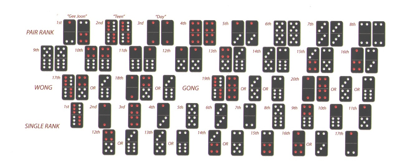 在所有賭場遊戲中,牌九無疑是最難學的,這點毋庸置疑。在玩牌九之前,玩家應該先了解16對牌的順序。對於西方人,或任何不熟悉中國神話的人來說,這個順序可能顯得隨意,難以記住。然而,這個遊戲背後有一個傳說,熟悉這個傳說有助於理解牌對的順序。