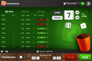 口袋骰子是一款簡單的骰子遊戲,可以在一些線上賭場玩。玩家可以選擇2到12之間的任一個點數,然後押注兩顆骰子擲出的點數是高於還是低於該點數。賠率與獲勝機率成正比。