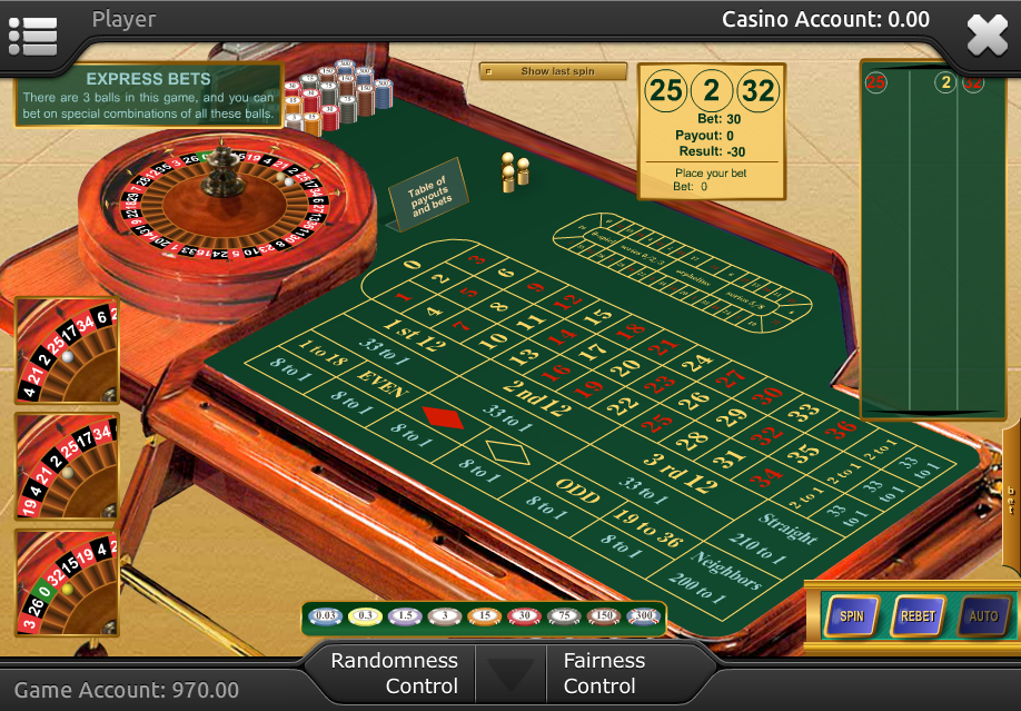 規則與傳統輪盤相同,只是有三個球。雖然幫助文件沒有說明,但三個球總是落在三個不同的數字上。投注類型有兩種: