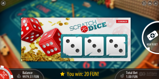 - 玩家刮開一張遊戲卡,露出三個骰子。