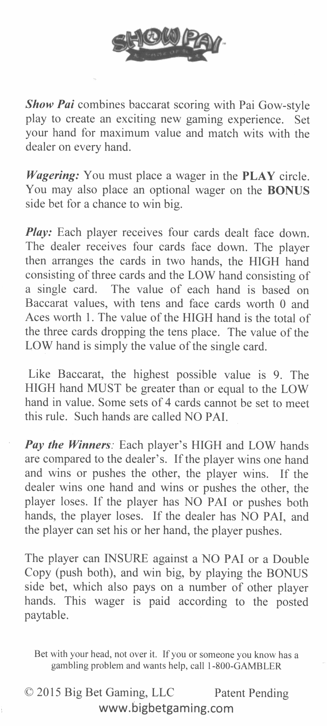 - 在我們的姊妹網站 Wizard of Vegas 上討論 Show Pai 。