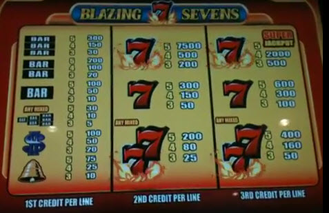 賠付表很容易從規則畫面和遊戲玻璃上看到。大多數視訊老虎機只是將所有獎金乘以每線投注的硬幣數量。而「熾烈七」則有所不同。第一個硬幣可用於贏得美元、鈴鐺和所有酒吧符號。第二個硬幣可用於贏得所有類型的“七”。第三個硬幣可使普通七和混合七的獎金翻倍,而「熾烈七」的獎金則翻倍以上。以下三個表格分別顯示了每線投注1、2和3個硬幣的賠付表。所有獎金必須左對齊。