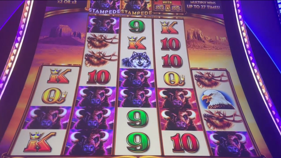 - 只有當獎項出現在捲軸 2 或 4 上方並且該捲軸上的箭頭堆疊大小為 7 時,才可贏得 Stampede。