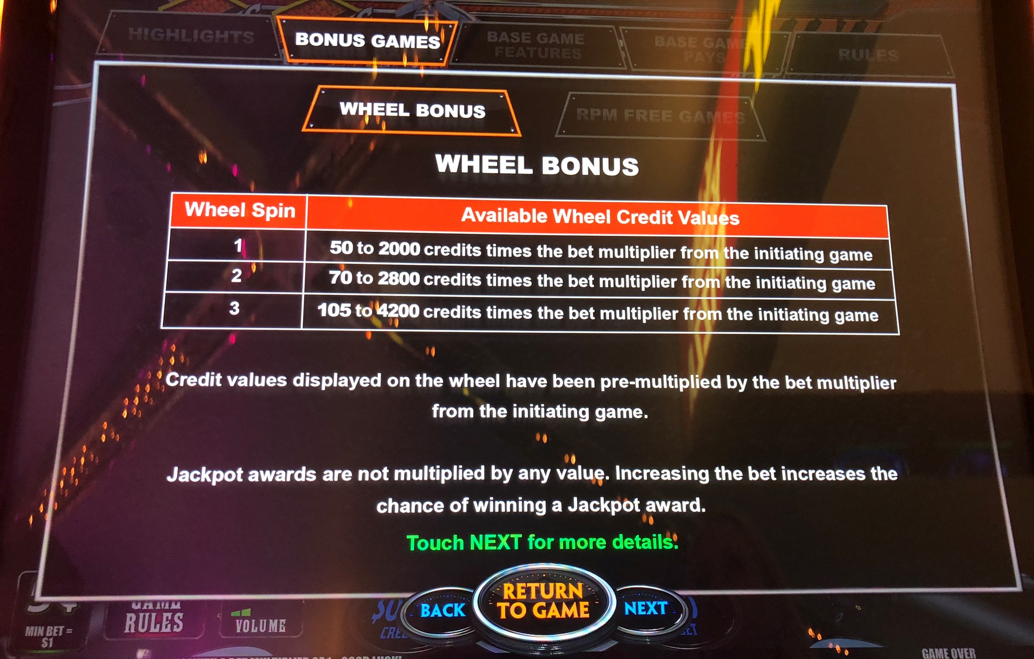 本文圖中的拉斯維加斯四皇后賭場的機器最高輪盤獎金為1萬美元。其他一些哈雷戴維森機器的輪盤上設有累積獎金部分。如果是這樣的話,任何特定時間的預期價值也將與累積獎金部分相關。累積獎金金額具體如何影響價值,恐怕我不清楚。