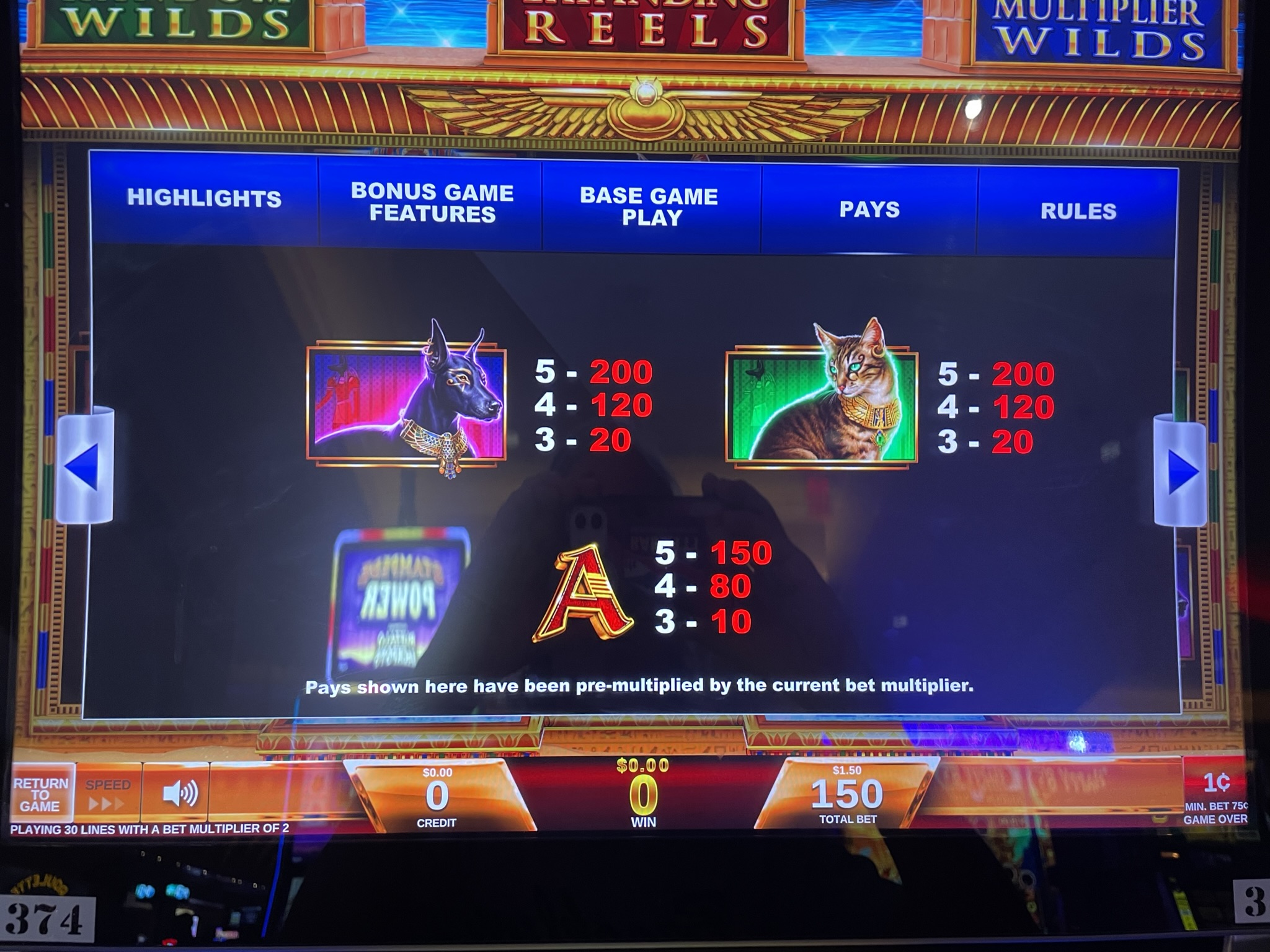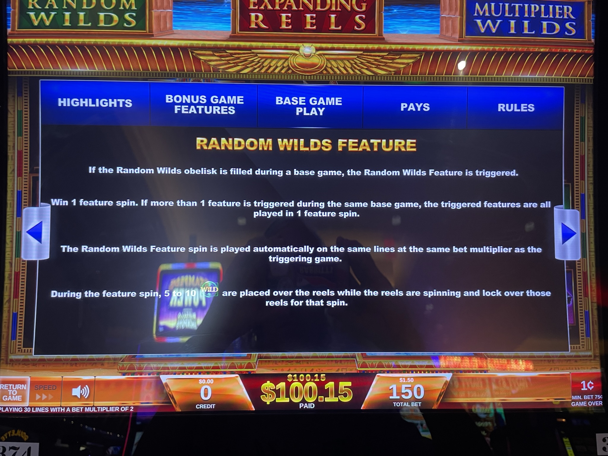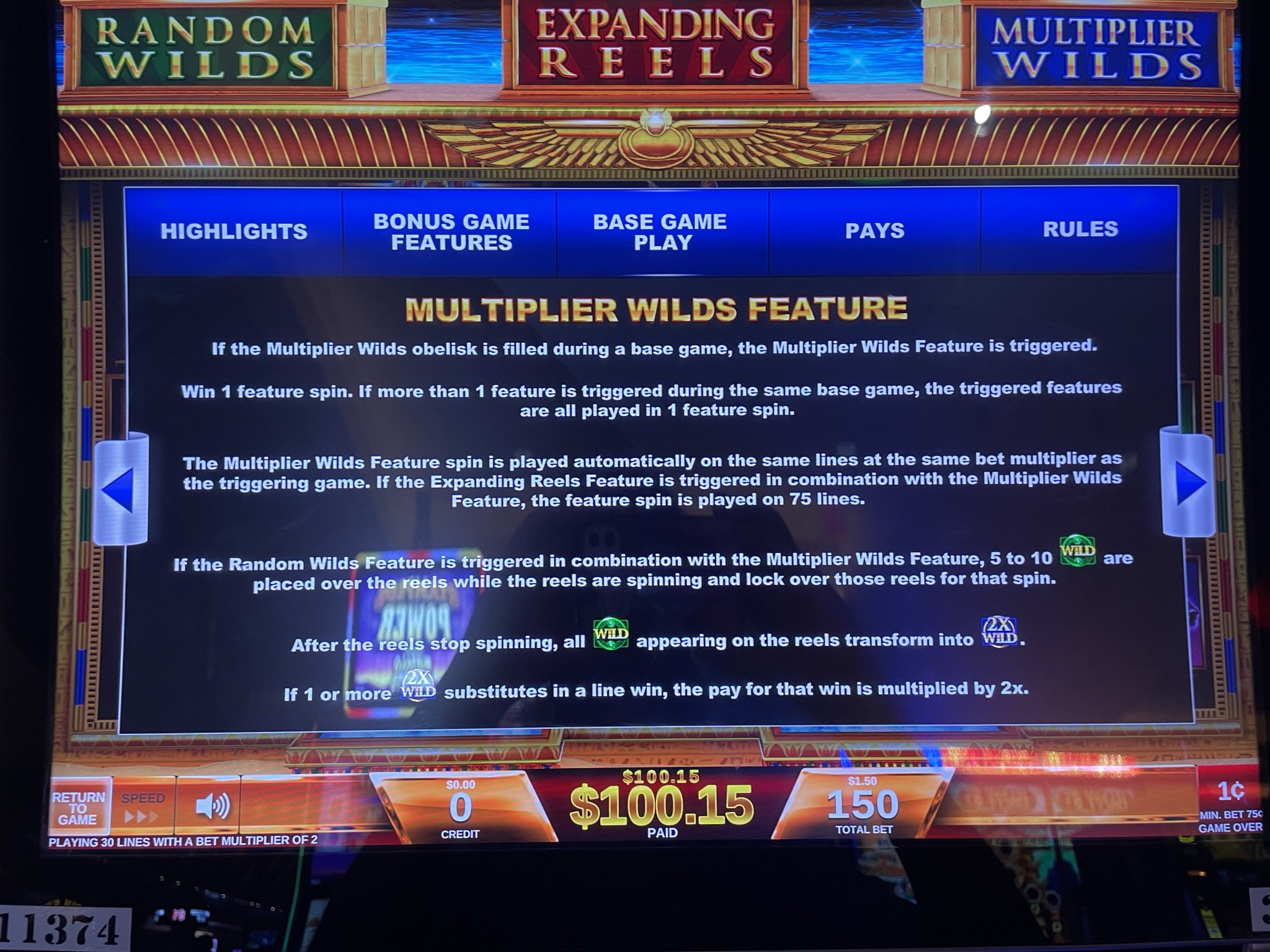 玩家獲得藍色方尖碑的全部三塊碎片後,即可獲得一次「倍增百搭」功能旋轉。在這個功能旋轉中,所有百搭牌都會變成雙倍百搭牌。任何涉及百搭牌的獎金(很可能是大多數百搭牌)都將翻倍。請記住,獲得兩個或更多雙倍百搭牌仍然只會翻倍獎金。