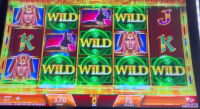 在下面的例子中,遊戲獎勵了我六個黏性百搭符號。轉軸停止後,第七個百搭符號停在了第四轉軸的下方。我的總獎金是10.45美元,相當於初始旋轉投注金額的13.93倍。