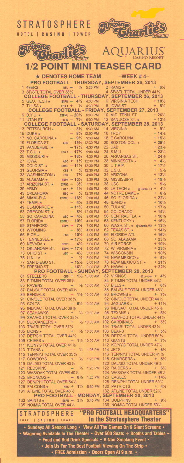 可惜的是,兩回合-110、三回合+180、四回合6分NFL讓分盤的自由賠率似乎在2014賽季就如同渡渡鳥般銷聲匿跡了。上一個堅持不懈的「傑瑞金塊」在2014賽季降低了賠率。