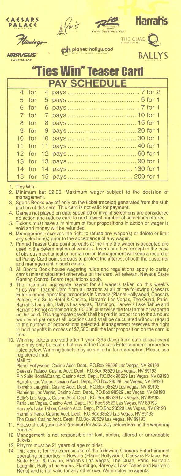 - 拉斯維加斯體育博彩調查-每個體育博彩公司在聯注和預告投注上支付的費用。
