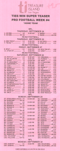 本頁的分析是基於1994年至2012年賽季的4450場NFL比賽。我從1994年開始分析,因為那一年引入了兩分轉換規則。除了樣本量差異之外,我還必須假設讓分盤口卡的讓分是如何產生的。為了節省時間,我沒有分析所有12種已知的過關卡,而是分析了其中5種。為了理解額外積分如何影響中獎機率,我創建了我的「巫師讓分盤口方程式」 。