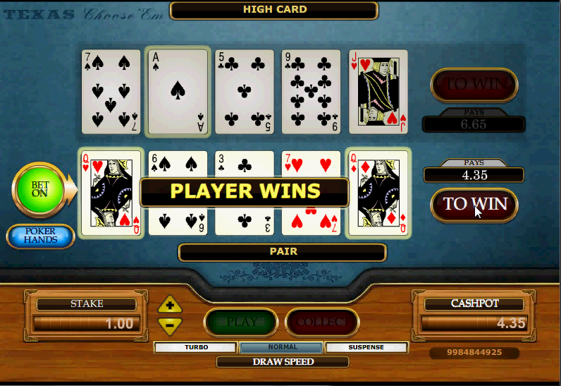 - 每手牌都會顯示賠償金。例如,下注1美元,贏取最高手牌的賠付可能是1.46美元,贏取最低手牌的賠付可能是2.76美元。所有贏款均以「一賠一」計算,這意味著賠付包含原始投注金的回饋。