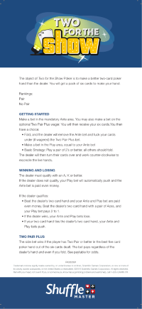 - 遊戲從玩家下注「前註」開始。此外,玩家還可以選擇「兩對以上」的附加註。