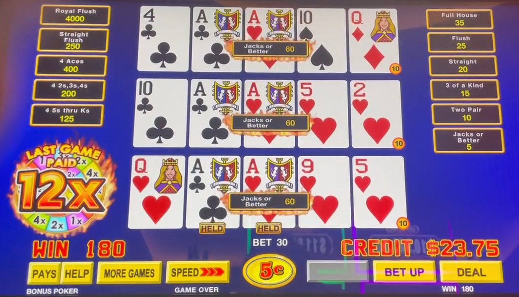 - 如果玩家每次下注 1 到 5 個硬幣,那麼遊戲的玩法就像傳統的多玩視訊撲克一樣。