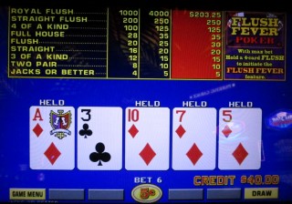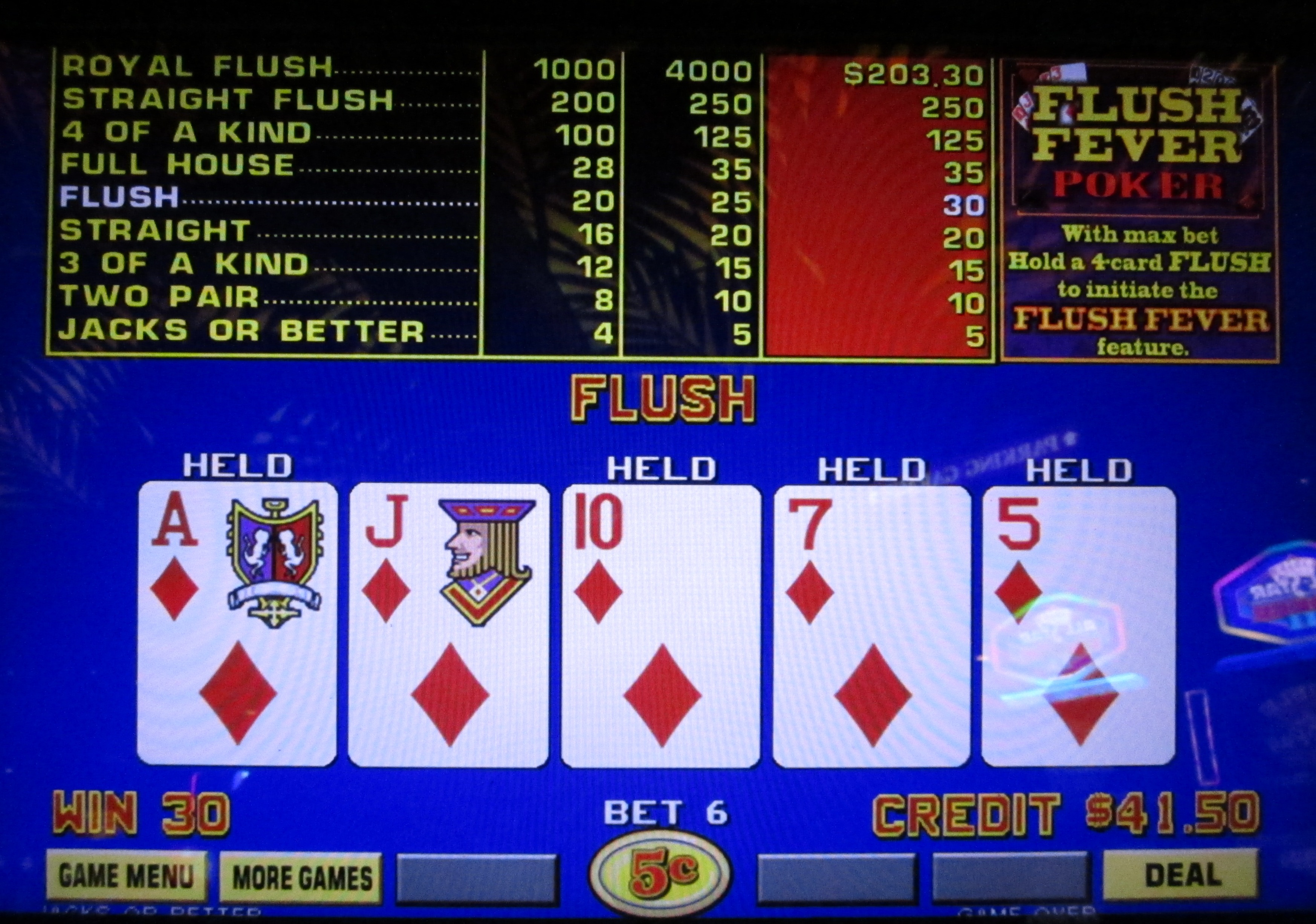 - 遊戲可以像傳統的視訊撲克一樣進行,下註一至五個硬幣,或者玩家可以啟用 Flush Fever 功能,可選擇下注第六個硬幣。