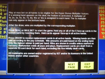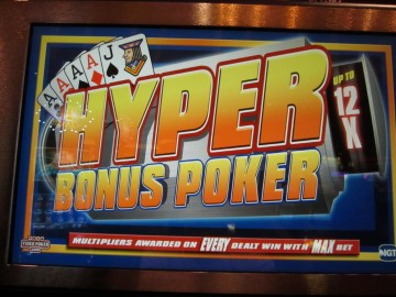 超級紅利撲克(Hyper Bonus Poker)是我在2013年10月在拉斯維加斯陽光海岸賭場(Suncoast casino)發現的一種視訊撲克遊戲。這款遊戲的特色在於,如果玩家在發牌時拿到任何一手好牌,就能獲得一個倍數。為了獲得這個功能,玩家必須加倍下注,而贏錢則是基於總下注金額的一半。