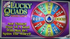 幸運四條輪盤撲克是一款簡單的視訊撲克遊戲,只要抽到任意自然四條,即可獲得一次旋轉獎勵輪盤的機會。要啟用此功能,玩家必須在標準的五枚硬幣投注基礎上額外支付一枚硬幣的費用。