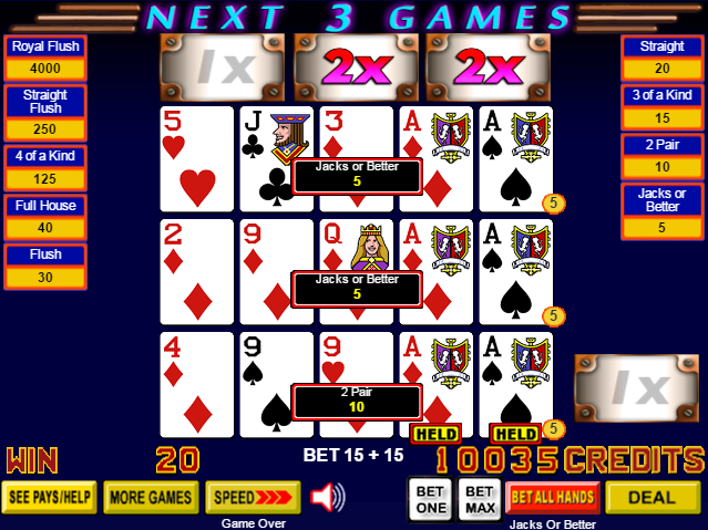 多連勝撲克 (Multi-Streak Poker) 是 IGT 推出的視訊撲克遊戲。我第一次看到它是在 2015 年 7 月,當時是在內華達州的 Topaz Lodge 和 Silver Legacy 酒店。這款遊戲的核心是,如果玩家加倍下注,那麼他將在接下來的三手牌中贏得根據他手牌的倍數。