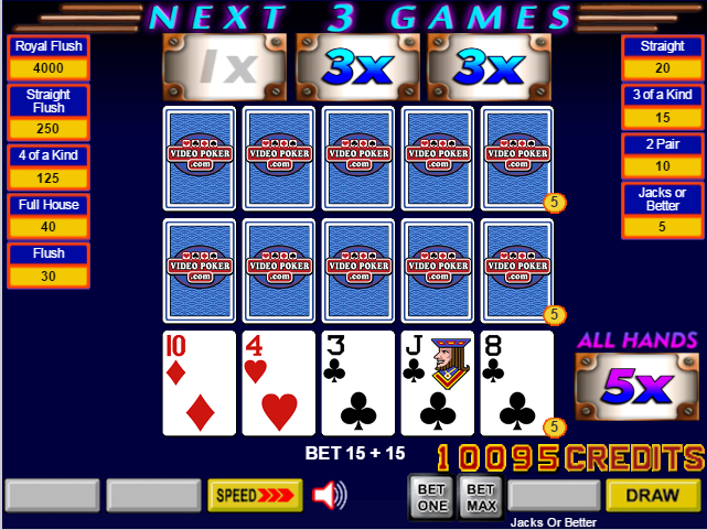 Jacks or Better、Bonus Poker Deluxe 和 Bonus Poker(一個版本)