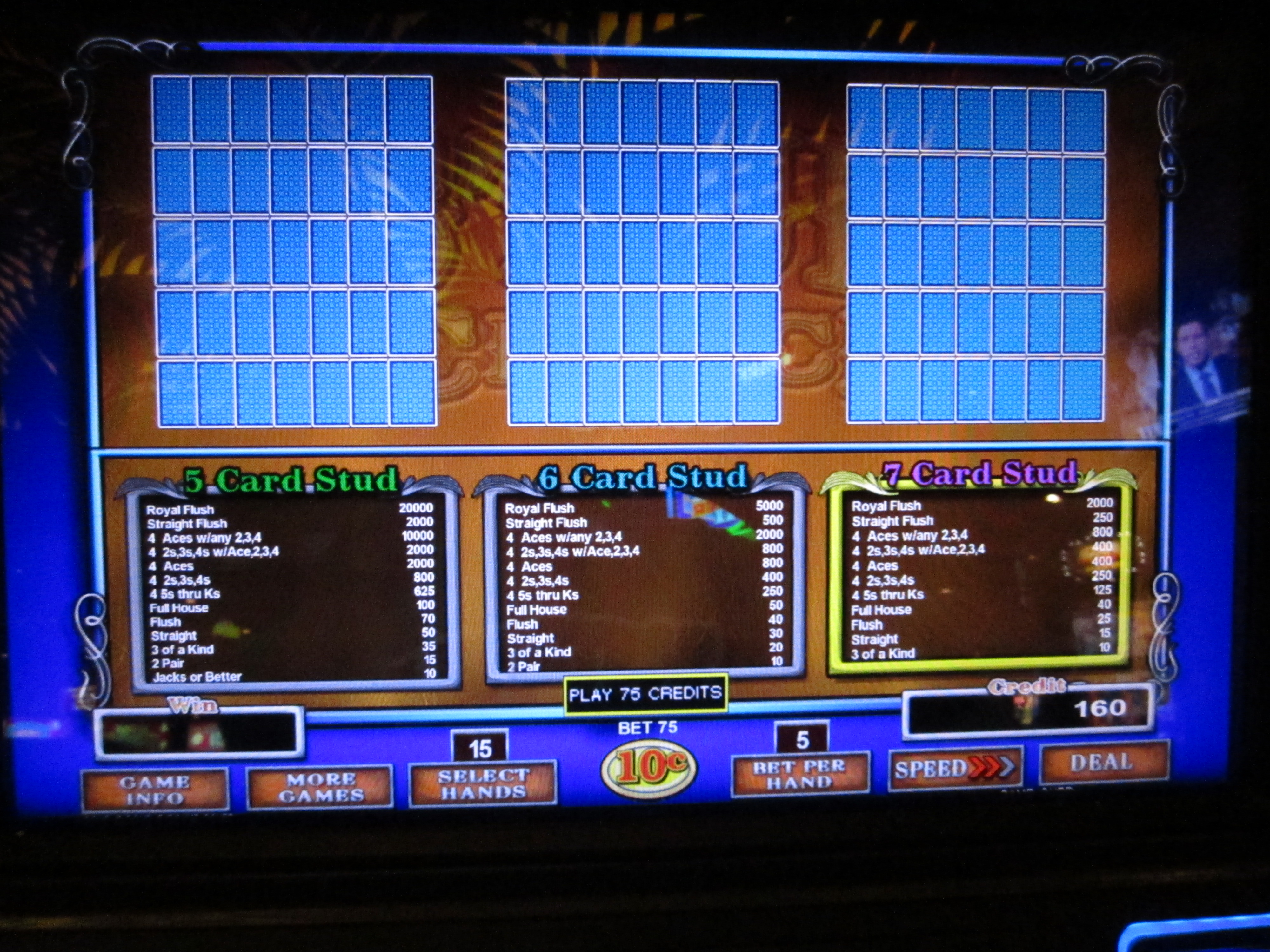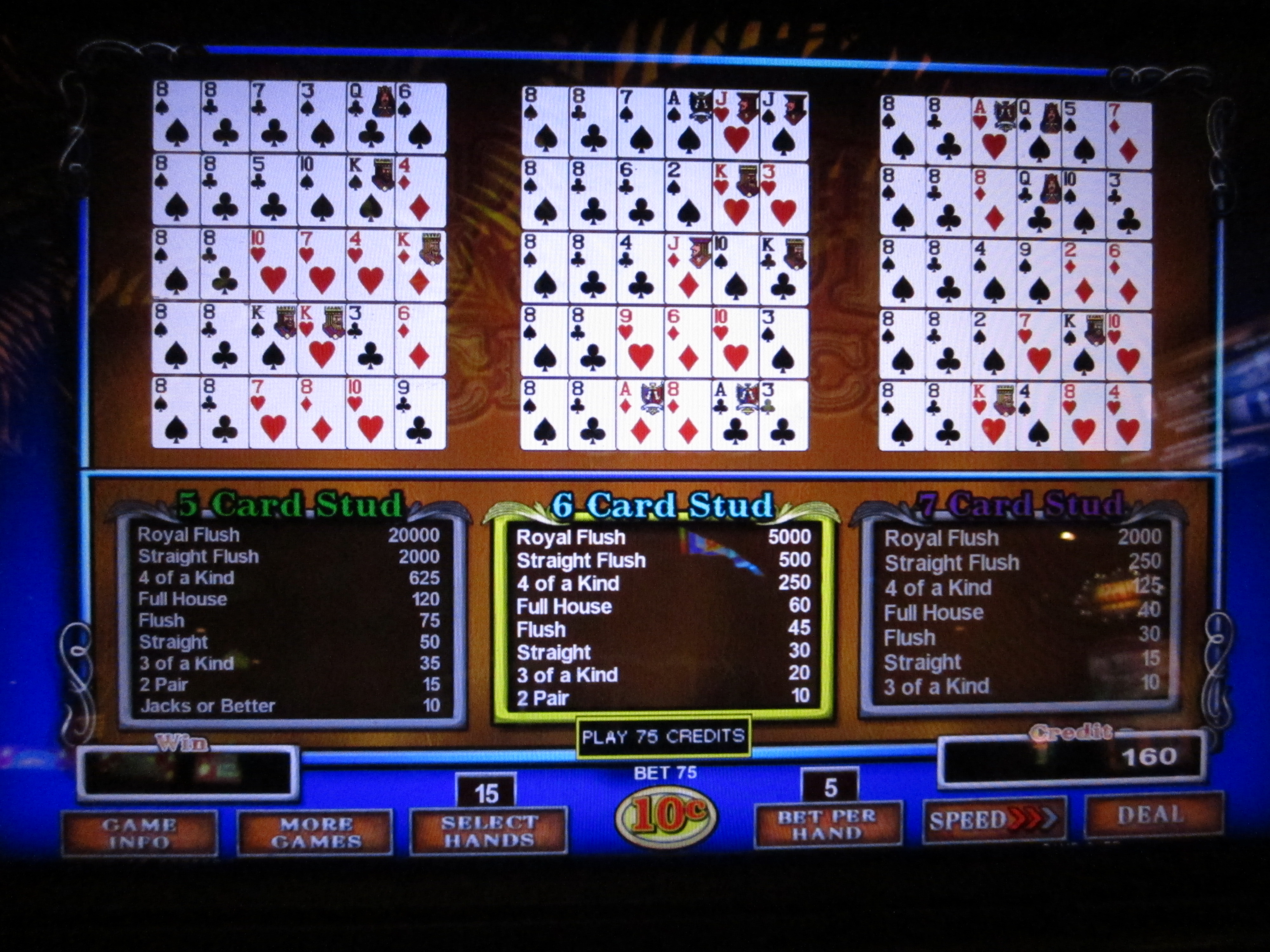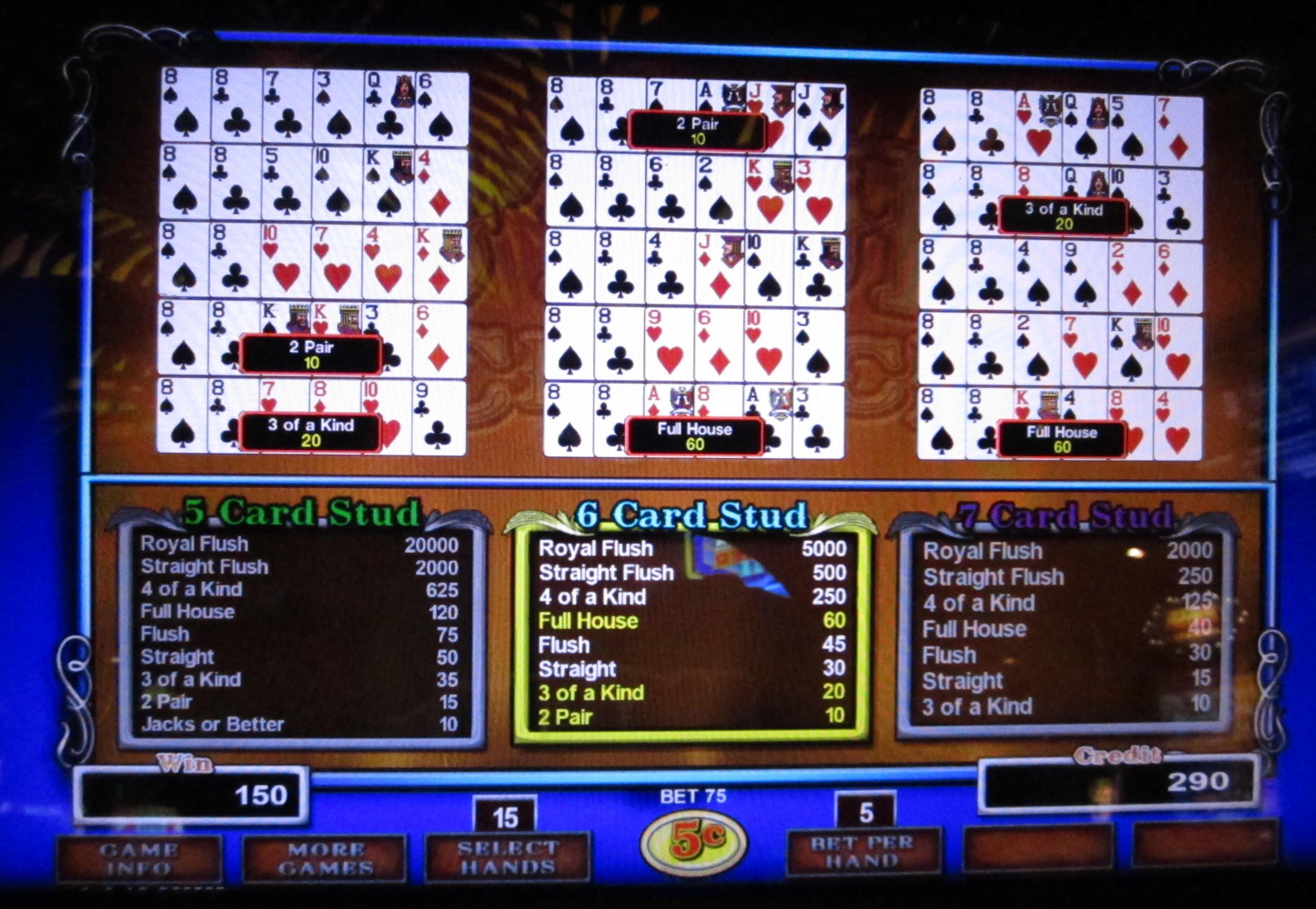 然後我選擇玩六張牌梭哈。我下了15手牌,結果如下: