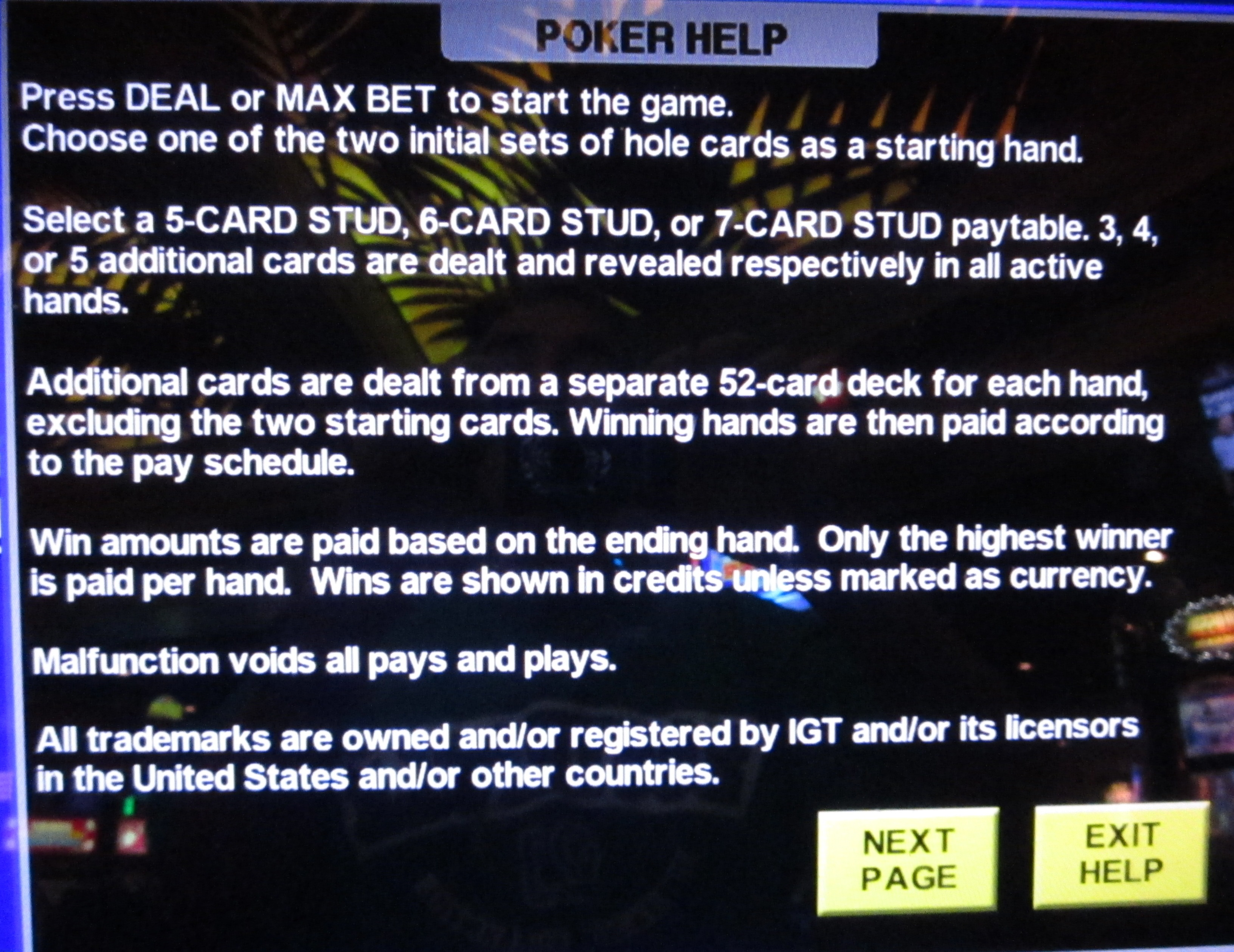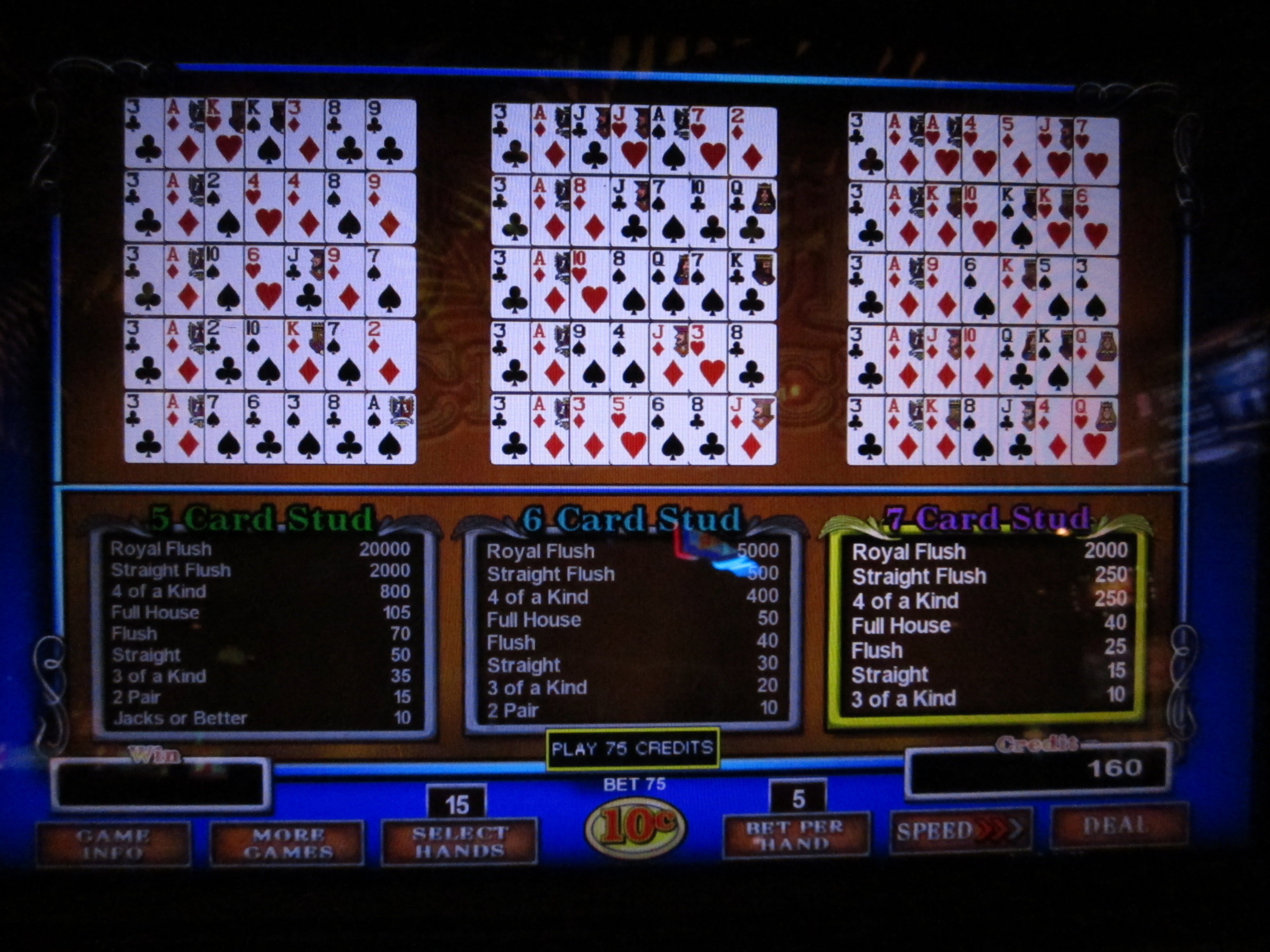 - 遊戲製造商 IGT — 與我分享了 Stud Choice Poker 的完整賠付表和回報清單。