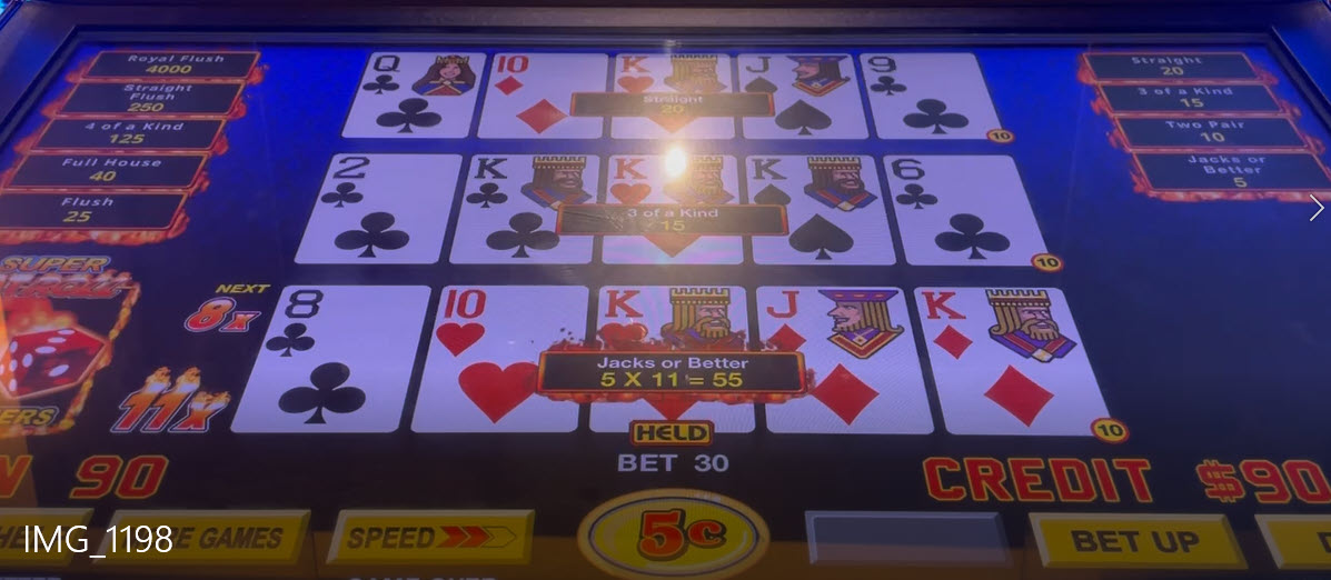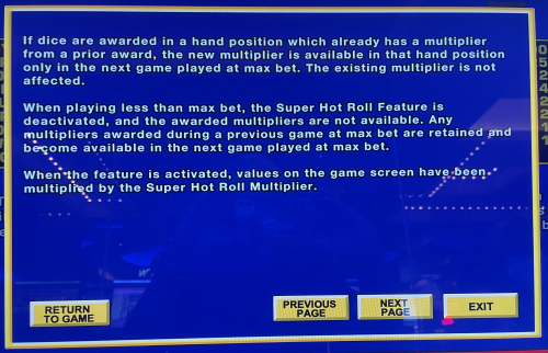 我第一次注意到 Super Hot Roll 是在 2021 年 5 月 3 日,地點是拉斯維加斯的紅岩賭場。它是遊戲Hot Roll的變體,增加了一個功能,其中乘數適用於當前遊戲和下一個遊戲。
