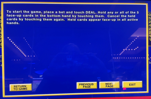 我的一對A在頂手牌中升級為兩對。在底手牌中,我隨機贏了11倍的乘數。基礎遊戲是6-5 Bonus Poker,J或更大牌賠率為1賠1,兩對賠率為1賠2。每局下注5個硬幣,我的總「贏」額為5×(2 + 1 + 1×11) = 70個積分。