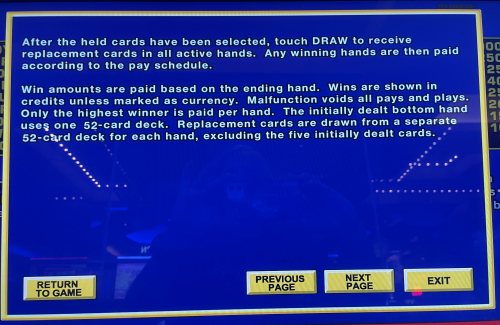 - 如果玩家每手下註一到五個硬幣,則該功能不會被激活,遊戲的玩法就像傳統的多玩視訊撲克一樣。