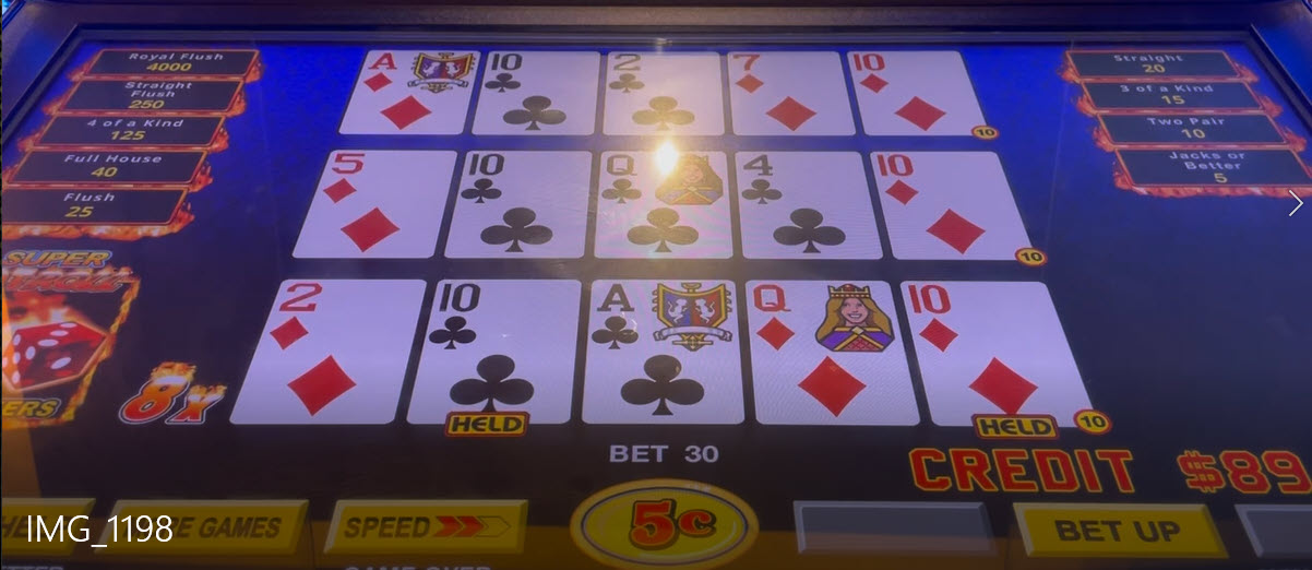 在上圖中,我每次下注10個硬幣來啟動該功能。我拿到了一對A,我保留了。
