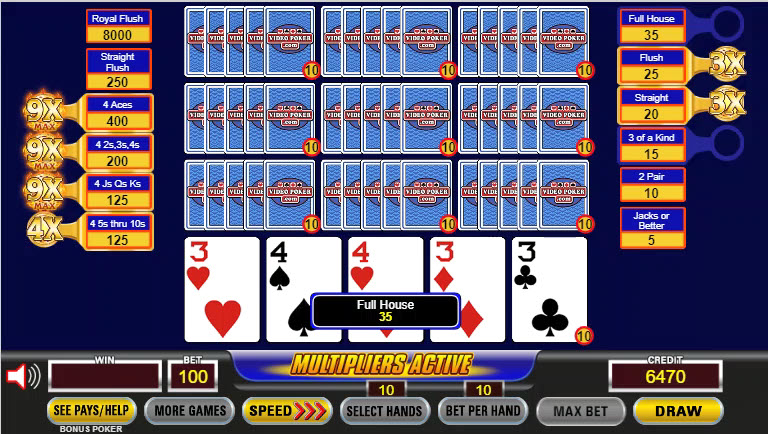 - 玩家可以選擇玩 3 次、5 次或 10 次視訊撲克。