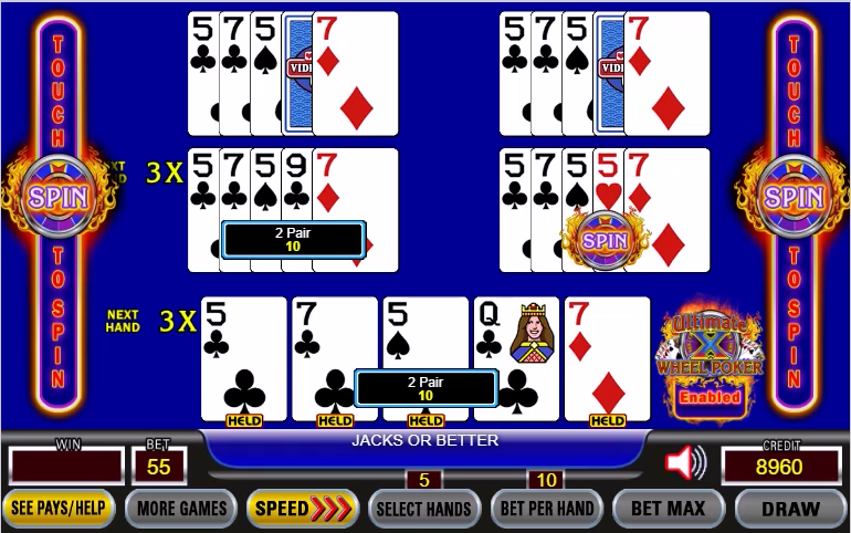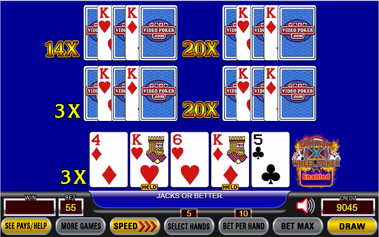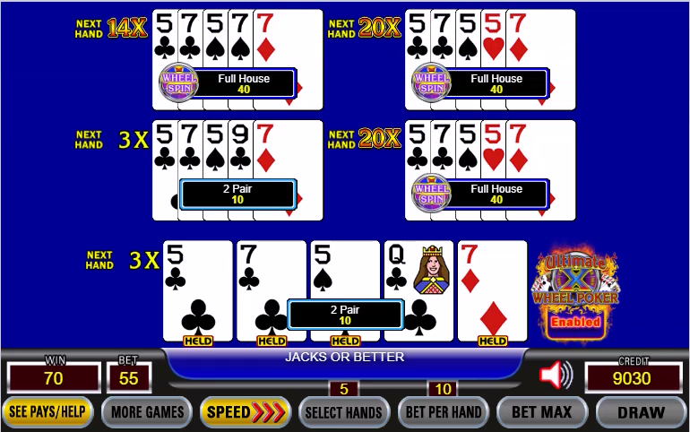 - Ultimate X Wheel Poker 僅提供 3 場和 5 場遊戲。