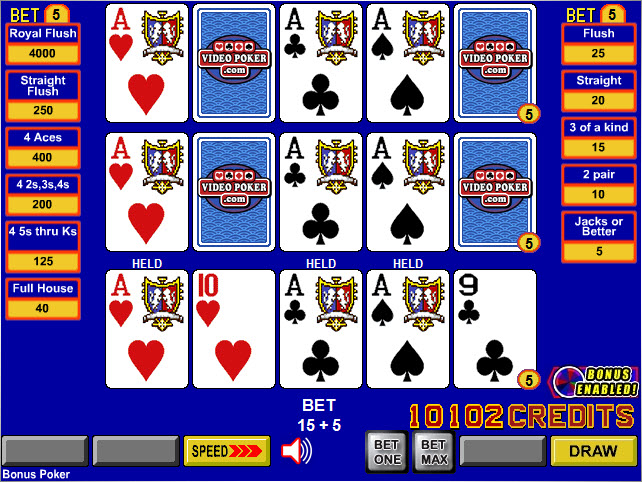 讓我們來看一個從VideoPoker.com截圖中截取的範例。