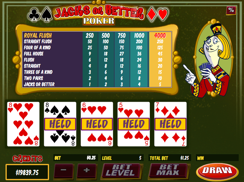 策略滿付Jacks或更好對子:滿付Deuces Wild 2點王牌: