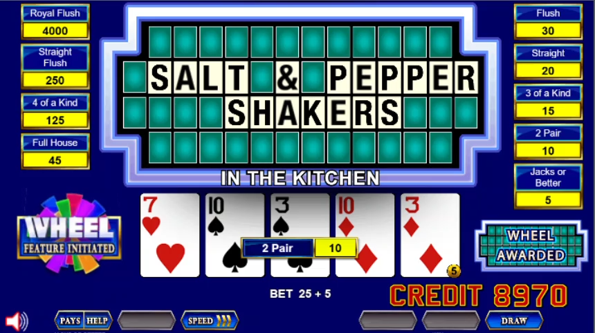 命運之輪撲克是一款基於多機位視訊撲克遊戲。遊戲通常每局投注1至5個籌碼。如果玩家額外投注5個籌碼(不是每局,而是總共5個籌碼),就有機會贏得一次轉輪遊戲。