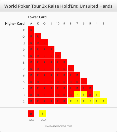 下表顯示了最佳策略。除了9手牌外,玩家的加註機率為91.9%。