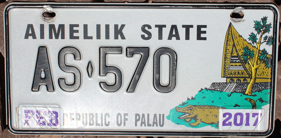 我不想空手而歸,所以又收藏了一些來自加勒比海、太平洋島嶼和「敵國」的車牌。這裡有一張來自帕勞艾梅利克州的漂亮車牌。