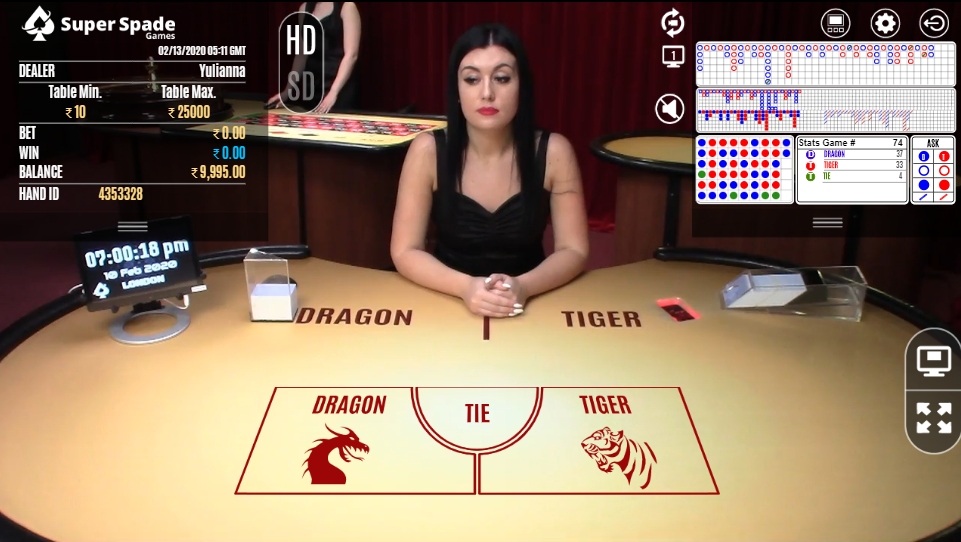 和所有真人荷官遊戲一樣, Super Spade也提供一款實用的龍虎遊戲,只需以常規賠率進行三注投注即可。需要注意的是,我體驗到的視訊傳輸速度非常慢,而且經常斷線。