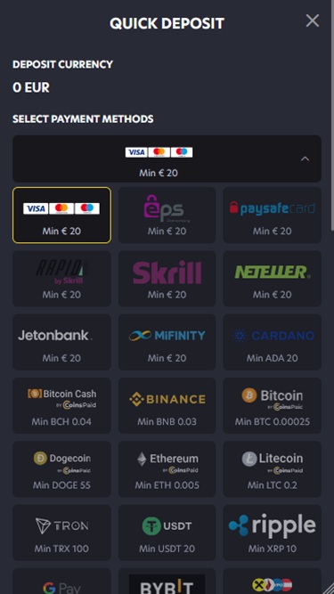 - 運營商不收取存款和提款費用。